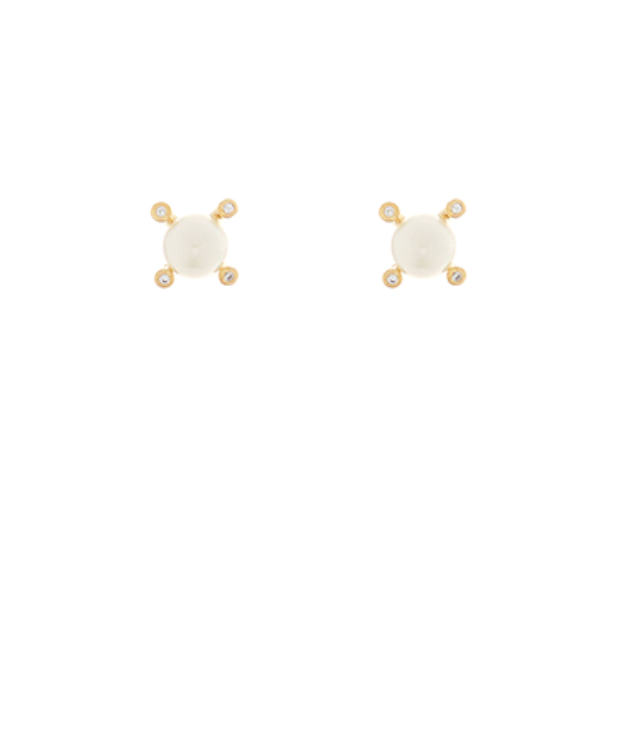 * Faux Pearl* Gold Dipped* Brass* Cubic Zirconia* Sterling Silver Post* 3/8" L