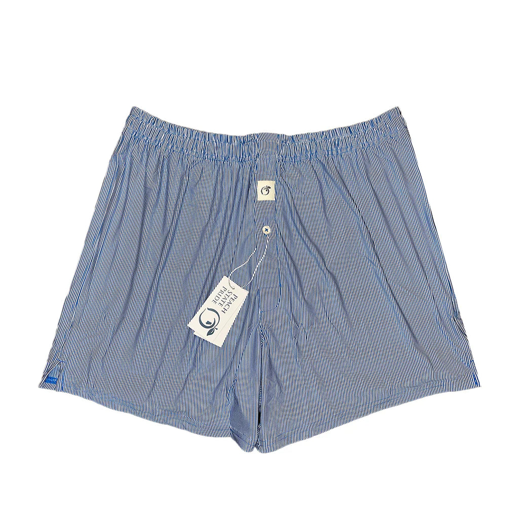 Stay comfortable in these classic-fit boxers, crafted from a soft polyester-spandex blend with four-way stretch for easy movement. Featuring a bold royal blue and white loblolly stripe, they combine timeless style with everyday comfort.