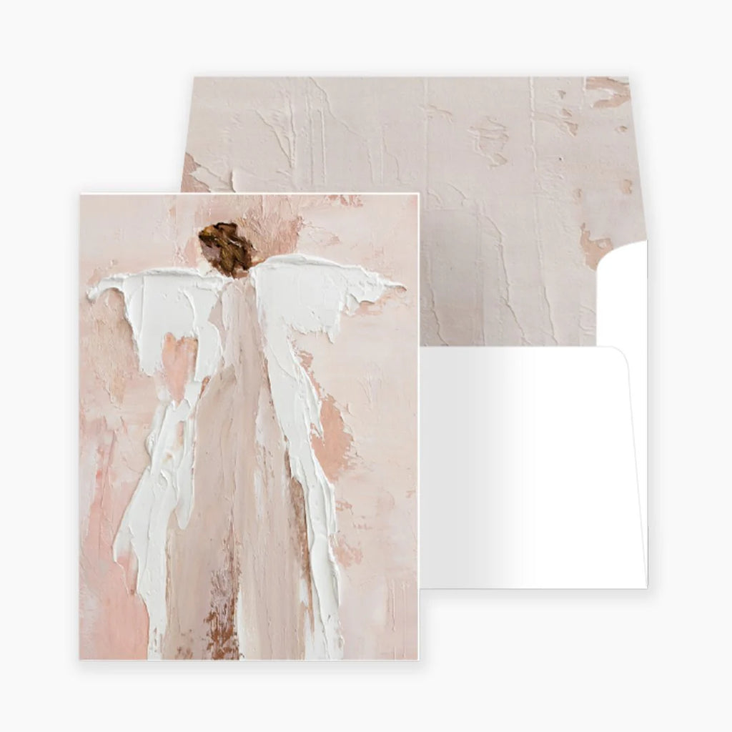 Everyone loves a handwritten note and our beautiful fine art notecards are a blank canvas for your words. Whether you are sending a note of congratulations, encouragement or sympathy, our notecards share your thoughts with beauty and flair. Our Gracious One Notecards feature the same angel throughout each pack and they also include a beautiful coordinating lined envelope. There are a total of 14 notecards and envelopes included in each pack. Notecards are a 3.75 x 4.25 inch fold over card, blank inside.