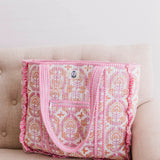 Introducing the Heart of Grace Designs Quilted Luxe Tote—a perfect blend of elegance and everyday functionality. Crafted with thick-grade quilting, this stylish tote offers a plush, high-end feel, enhanced by a contrasting border printfor a refined touch. Designed for practicality, it features a convenient exterior pocket, ideal for easy access to your essentials. With a spacious, open-top design, this tote is perfect for carrying everything from daily necessities to weekend getaway must-haves.