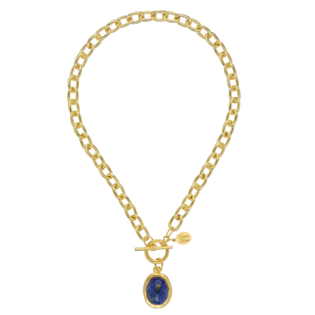 Gold Oval & Blue Lapis Stone Toggle Necklace