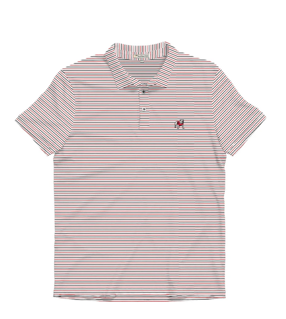 UGA Standing Dawg White, Red & Black Beech Stripe Polo