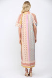 Beige Patchwork Print V-Neckline Kaftan Style Dress