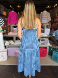 Elevate your wardrobe with the Stacee Dress, a timeless gingham maxi that seamlessly transitions from casual days to evening occasions. Featuring a striking sky blue and navy blue gingham pattern, this dress offers classic charm with modern versatility. The flowing maxi silhouette flatters every figure while the crisp gingham print adds visual interest and dimension. Perfect for brunches, garden parties, or relaxed weekend outings, the Stacee Dress pairs effortlessly with sandals, sneakers, or heels. Invest in a piece that combines enduring style with everyday wearability—a wardrobe essential that works as hard as you do.