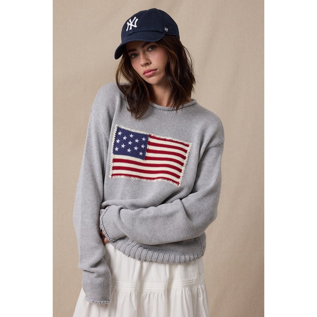 American Flag Sweater Grey