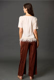 FINAL SALE - Satin Feather Trim Top