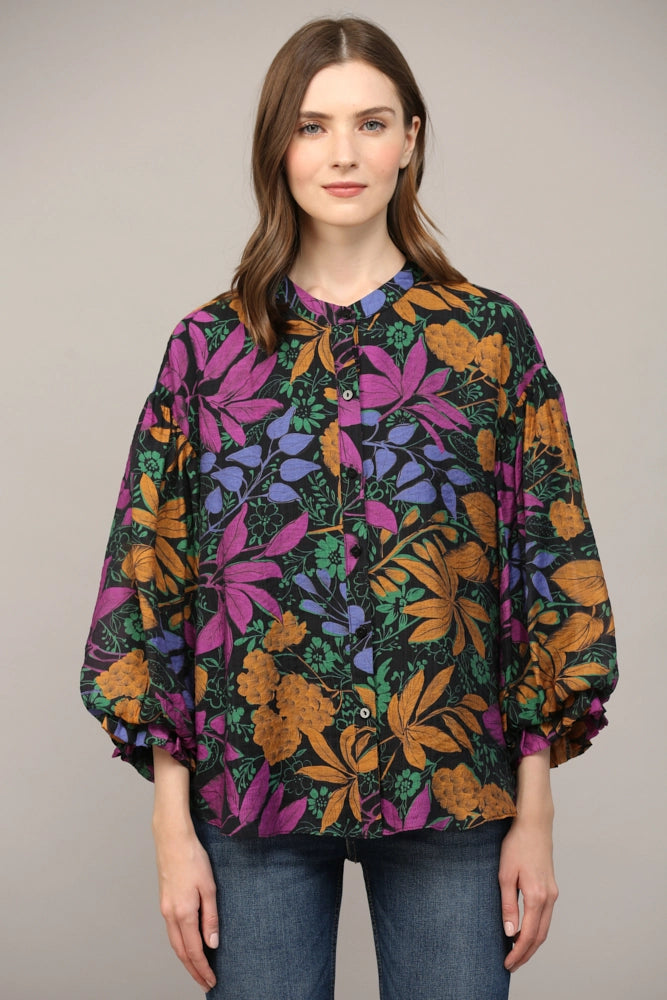 FINAL SALE - Bold Floral Print Bubble Sleeve Blouse