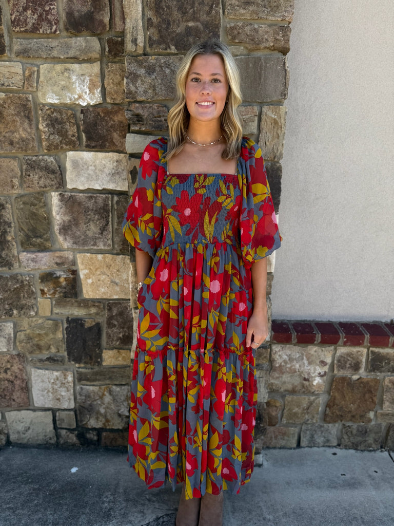 FINAL SALE - Floral Chiffon Smock Tier Maxi Dress