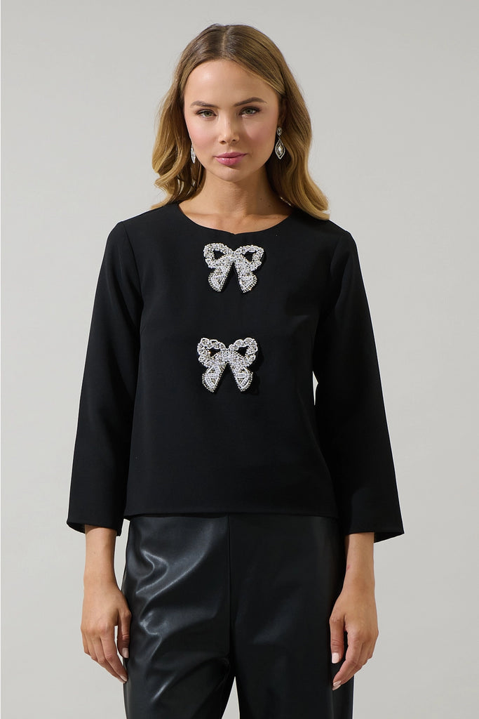 Own every outfit with a top that blends charm and edge. Designed with 3/4 sleeves, two beaded bows at the front, and a back invisible zipper, it’s perfect for standout style. Style with leather pants and block heels or a tailored skirt and crossbody for instant polish.