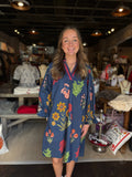 Introducing the Ryan Dress—your new go-to for effortless style with a pop of personality! This navy beauty features a vibrant floral design that brings joy to any occasion, whether you're heading to brunch, a garden party, or a casual day out. The classic navy base keeps things sophisticated while the colorful blooms add that perfect touch of whimsy. Comfortable, versatile, and undeniably charming, the Ryan Dress is ready to become your favorite wardrobe staple.