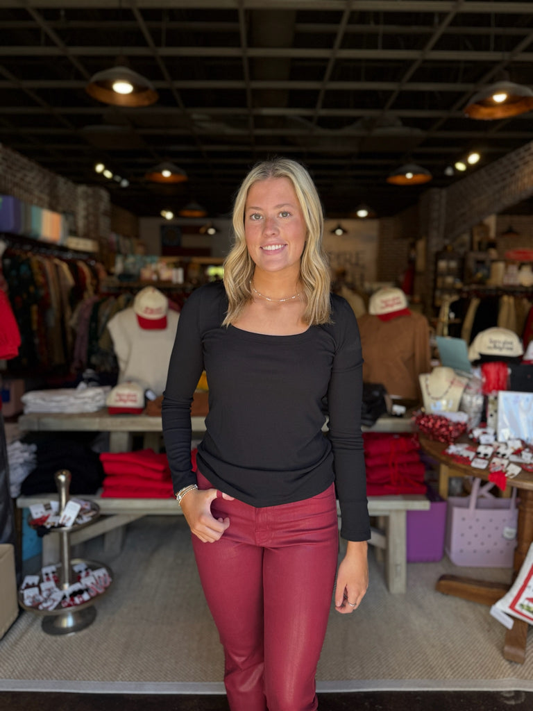 FINAL SALE - Black Scoop Neck Ribbed Knit Top
