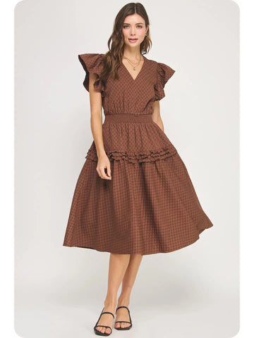 FINAL SALE - Chocolate Textured Ruffle Midi Dress