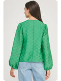 Emerald Pintuck Check Textured Puff Sleeve Blouse