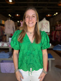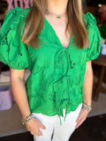 Friona Eyelet Puff Sleeve Top Kelly Green