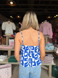 Escape to your next getaway in effortless style with the Zoey Tank. This breezy blue and white printed tank combines comfort with vacation-ready appeal, making it the perfect layering piece or standalone essential for warm-weather adventures. Lightweight and versatile, it pairs seamlessly with shorts, skirts, or linen pants for a relaxed yet polished look that takes you from beach to brunch without missing a beat.