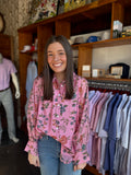 Elevate your wardrobe with the Natalie Top, a stunning piece featuring a captivating blue floral design that brings effortless elegance to any occasion. The intricate botanical pattern adds visual interest and versatility, making it perfect for pairing with your favorite jeans, skirts, or trousers. Crafted for comfort and style, this top transitions seamlessly from casual daytime wear to evening outings. Whether you're dressing up for a special event or keeping it relaxed on the weekend, the Natalie Top delivers timeless appeal with a modern twist that flatters and inspires confidence.
