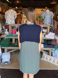 The Susan Dress combines a classic striped design with a cozy faux wrap sweater for effortless style. Perfect for active days—whether you're taking a leisurely walk or staying on the move, this versatile piece keeps you comfortable and put-together.