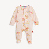 - Magnetic closures: magnets line the seam from the neck to upper thigh for sizes up to 0-3m & from neck to crotch for sizes 3-6m and up.