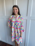 Get ready for spring with our Morgan Dress! The Spring colors will brighten up any outfit, and the dress is the perfect transition piece for those in-between weather days. Bring some fun and playful vibes to your wardrobe with this quirky dress.