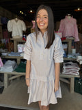 Elevate your everyday wardrobe with the Claire Dress, a timeless piece that combines classic sophistication with modern charm. Featuring a crisp button-down front and refined basic collar, this dress offers effortless versatility for any occasion. The delicate tiered detail creates flattering dimension through the bodice, while subtle shirring at the sleeves adds texture and visual interest. Perfect for layering or wearing solo, the Claire Dress transitions seamlessly from office to weekend, delivering polished style with understated elegance.