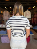FINAL SALE - Navy Tessie Stripe Short Sleeve Sweater Top